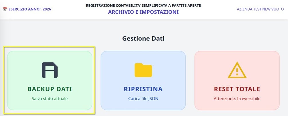 Puoi inserire dati fino a 15 fatture entrata + uscita, 10 contatti clienti/fornitori, 30 movimenti manuali; il raggiungimento di una sola di queste soglie bloccherà automaticamente le funzionalità, quindi hai margine sufficiente per i tuoi test; azzerando l'archivio potrai testare quanto vuoi.